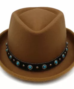 Elevate your style with our Leather Belt Decorated Pork Pie Hat Fedora. This classic hat features a high crown of 4.33 inches and a brim width of 1.38 inches, adding a touch of elegance to any outfit.